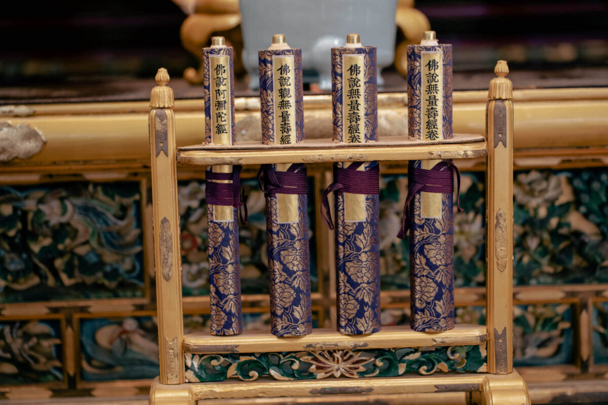 O Sambutsugue, Hino de Louvor ao Buda, é parte do Sutra do Buda da Vida Imensurável ou Sutra Maior. Nele, o Bodisatva Darmākara louva o seu Mestre, o Buda Lokesvararāja. Os versos do Sambutsugue precedem os 48 votos em que o Darmākara jura salvar todos os seres diante do seu Mestre antes de se tornar o Buda Amida.
